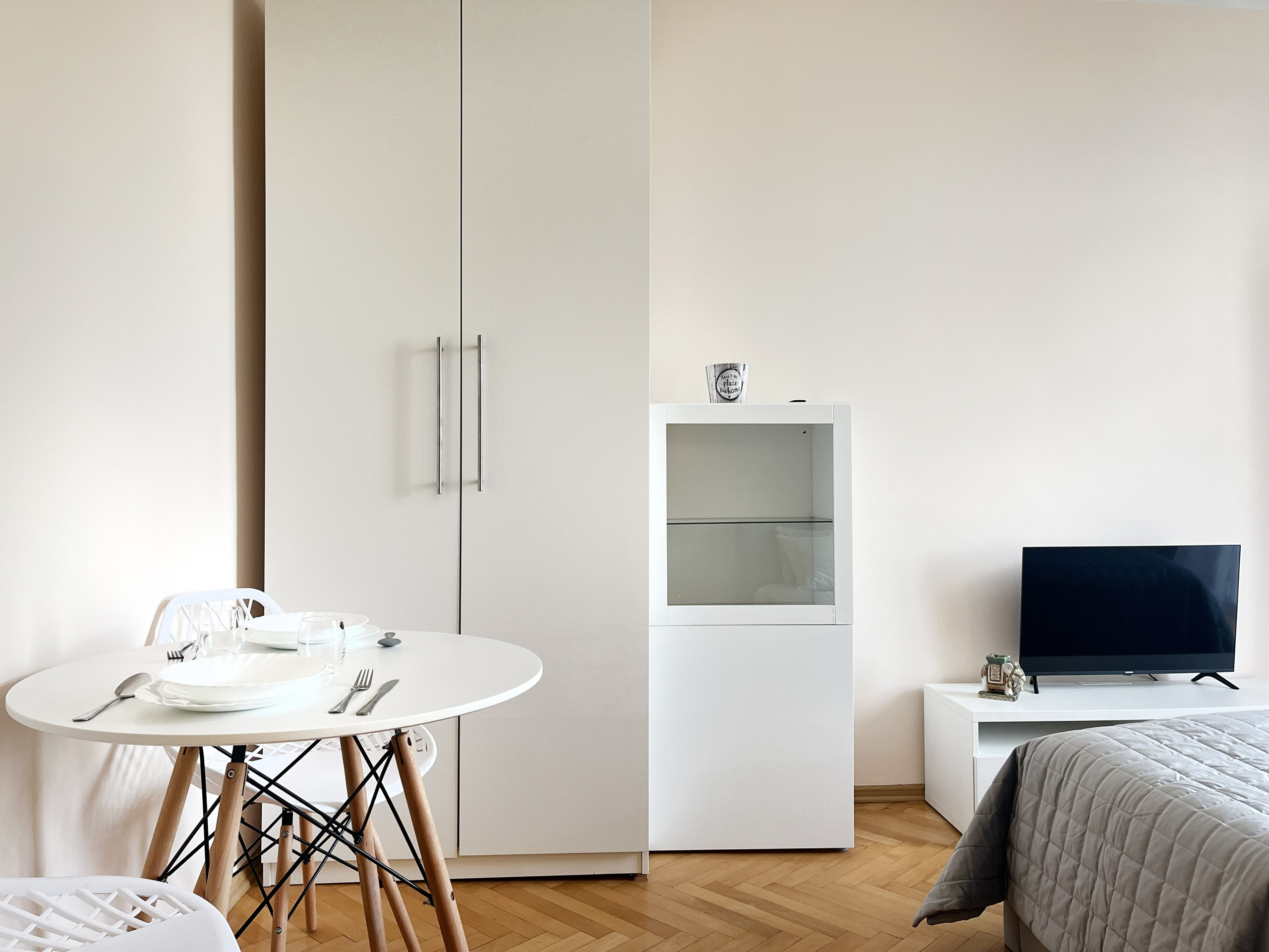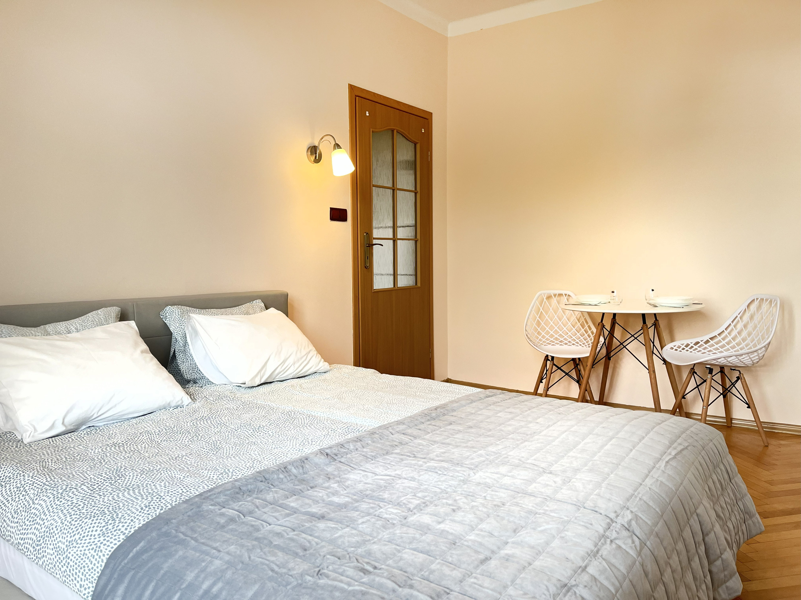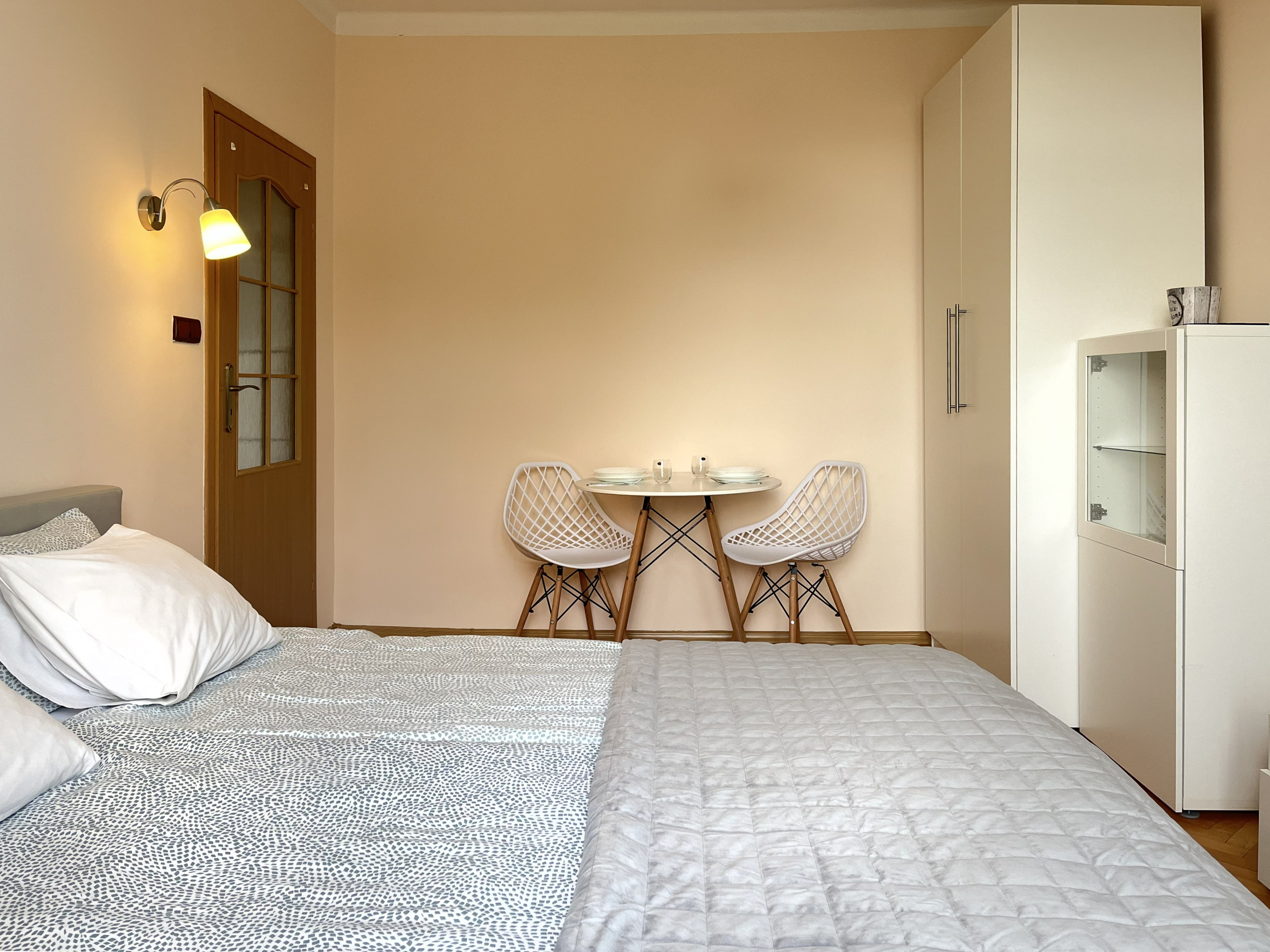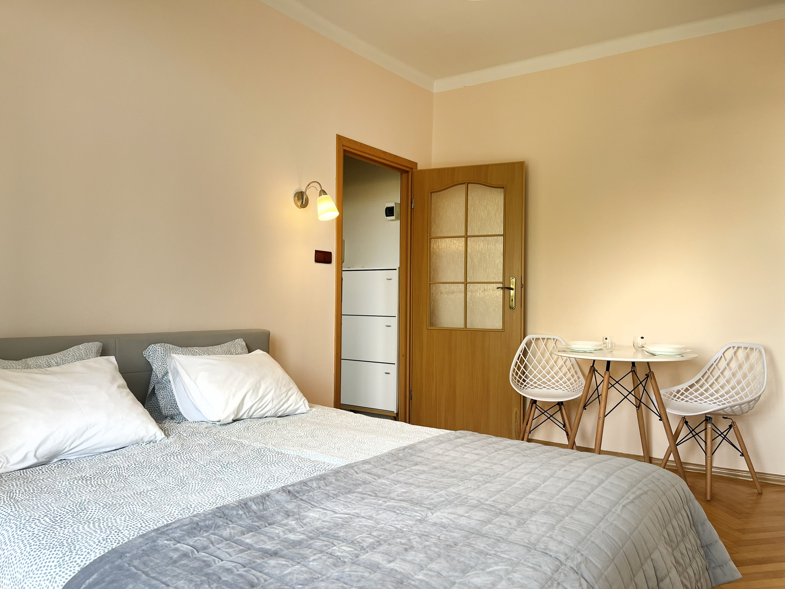 Die Ferienwohnung in Kraków verfügt über 2 Schlafzimmer und hat eine Kapazität für 4 Person(en). Unterkunft verfügt über 34 m². Die Unterkunft verfügt über einen Aufzug, eine Waschmaschine, ein Bügeleisen/-brett, ein Internetanschluss (WLAN), ein Föhn, ein Balkon, eine Zentralheizung, 1 Fernseher.Die Separate Küche mit Gas-Kochfeld ist ausgestattet in einen Kühlschrank, eine Mikrowelle, ein Backofen, Gefrierschrank, Geschirr/Besteck, Kochutensilien, eine Kaffeemaschine und einen Wasserkocher.