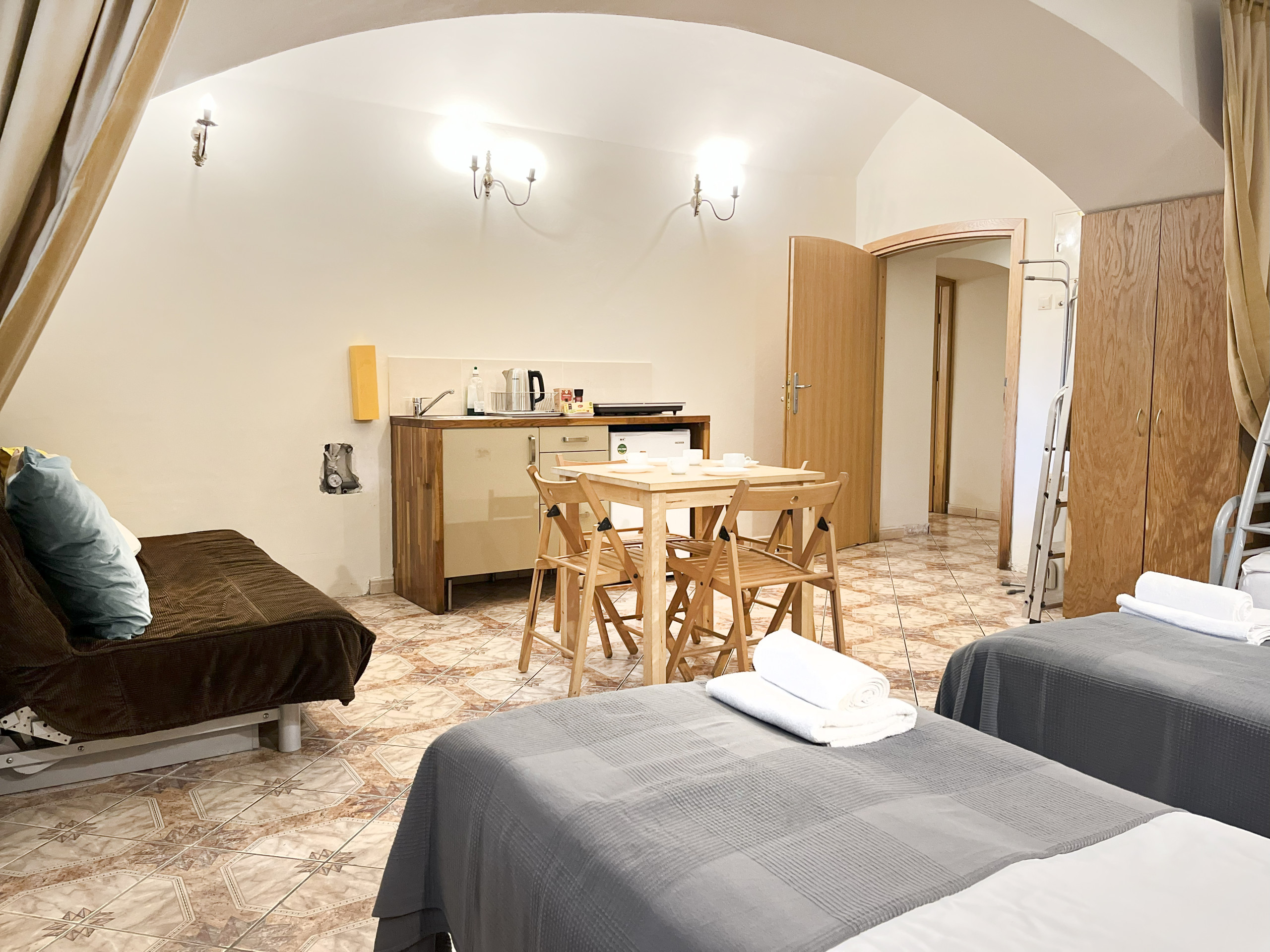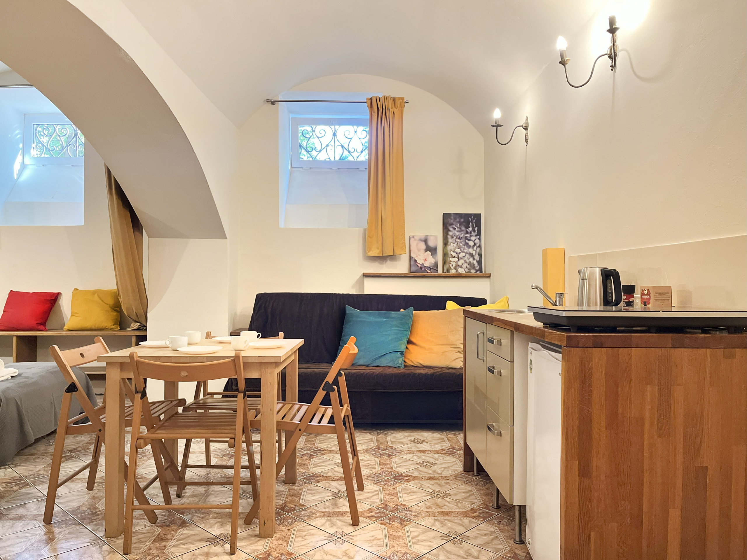 Die Ferienwohnung in Kraków verfügt über 2 Schlafzimmer und hat eine Kapazität für 12 Person(en). Unterkunft verfügt über 50 m². Die Unterkunft verfügt über ein Bügeleisen/-brett, ein Internetanschluss (WLAN), ein Föhn, eine Zentralheizung. Die Offene Küche mit Induktions-Kochfeld ist ausgestattet in einen Kühlschrank, eine Mikrowelle, Geschirr/Besteck, Kochutensilien, eine Kaffeemaschine, einen Toaster und einen Wasserkocher.