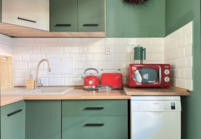 The apartment in Kraków has 1 bedrooms and has capacity for 3 people. The apartment is 35 m². The accommodation is equipped with the following items: iron, internet (Wi-Fi), hair dryer, central heating, 1 TV. In the hotplate of glass ceramics independent kitchen, refrigerator, microwave, freezer, dishwasher, dishes/cutlery, kitchen utensils, coffee machine, toaster and kettle are provided.