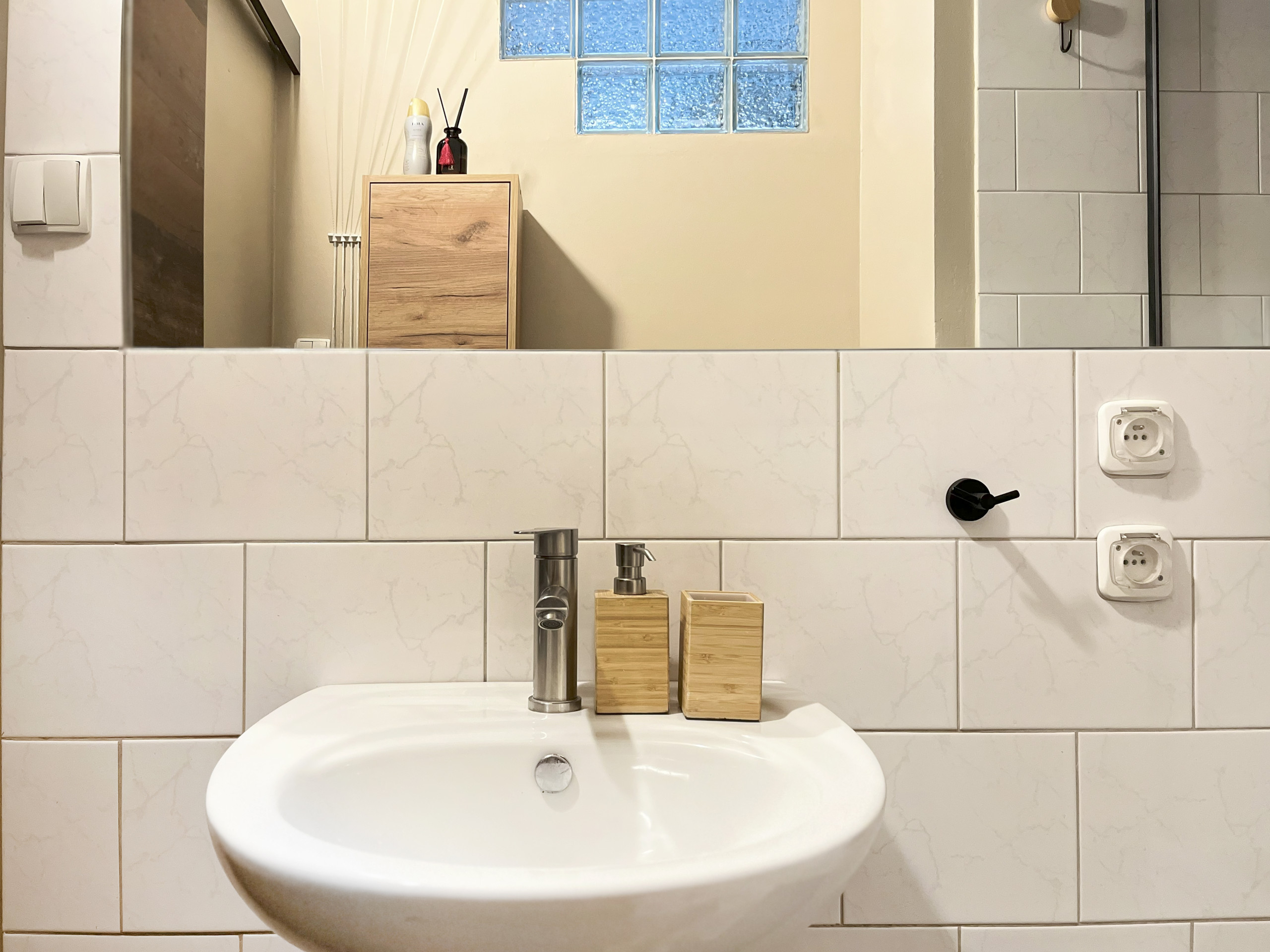 Przy wejściu zostaniesz powitany przez przytulną sypialnię wygodną rozkładaną kanapą, gdzie spokojnie wypoczniesz po pełnym wrażeń dniu. Naszym celem jest, abyś poczuł się swobodnie, nie jak gospodarz, ale jak długo wyczekiwany gość.